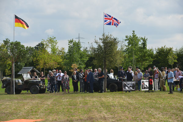 Die Reservisten der Bundeswehr und die Kameraden der Bundespolizei nahmen ihre Positionen ein, und ich konnte mich nun, zusammen mit den mittlerweile eingetroffenen Bürgermeistern der beiden Gemeinden gegen 09:30 Uhr um die ersten Gästen kümmern, die bis 10:00 Uhr eintreffen würden. Eine Familie aus Australien hatte leider kurzfristrig absagen müssen, aber fünfzehn angekündigte Nachfahren trafen nach und nach an der Absturzstelle ein. Viele hatten eine 23-stündige Reise hinter sich, um an der Gedenkfeier teilnehmen zu können.
