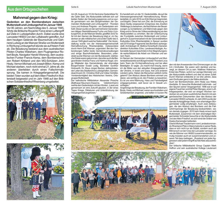 B 17-Absturz 1944: Erinnerungsstück für Familien der Opfer - Haßloch/Neustadt - DIE RHEINPFALZ