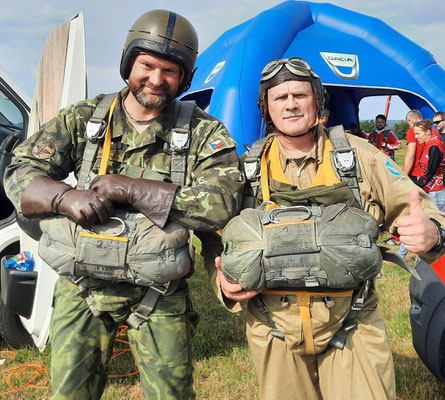 Since descendants were interested in finding out more, I thought why not just show them, film a military round canopy parachute jump (GoPro recordings during the jump), and show them how a jump with one of the "old round military parachutes" (jump/exit, flight, landing) would have looked like in general.