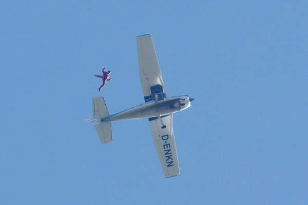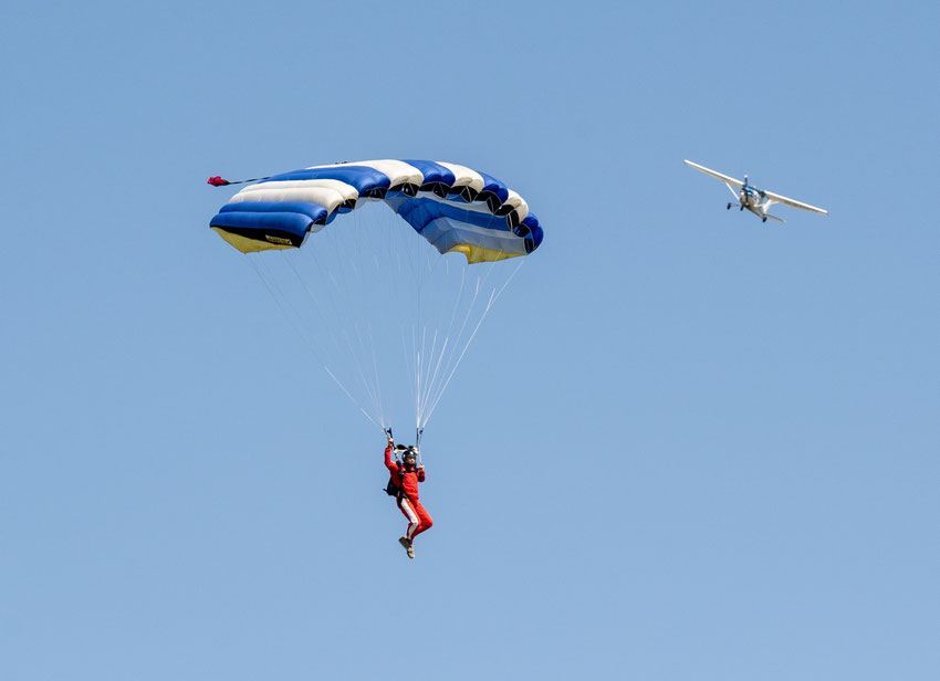 Da Nachfahren aber interessiert waren mehr zu erfahren, dachte ich mir, warum nicht einfach zeigen, gar filmen (GoPro-Aufnahmen während des Absprungs), wie das mit den „alten runden Fallschirmen“, die es ja immer noch bei Fallschirmjägereinheiten gibt, damals in etwa funktioniert hat bzw. hätte (Absprung, Flug, Landung).
